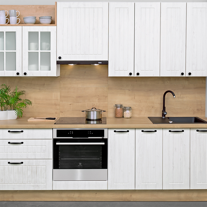 Przykładowe realizacje kuchnii w stylu prowansalskim w układzie prostym